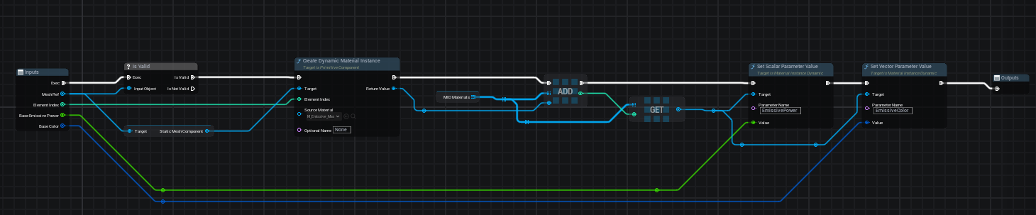 Create a Macro or Function (e.g., Setup MID) that handles the creation and configuration of Dynamic Material Instances. This macro should: