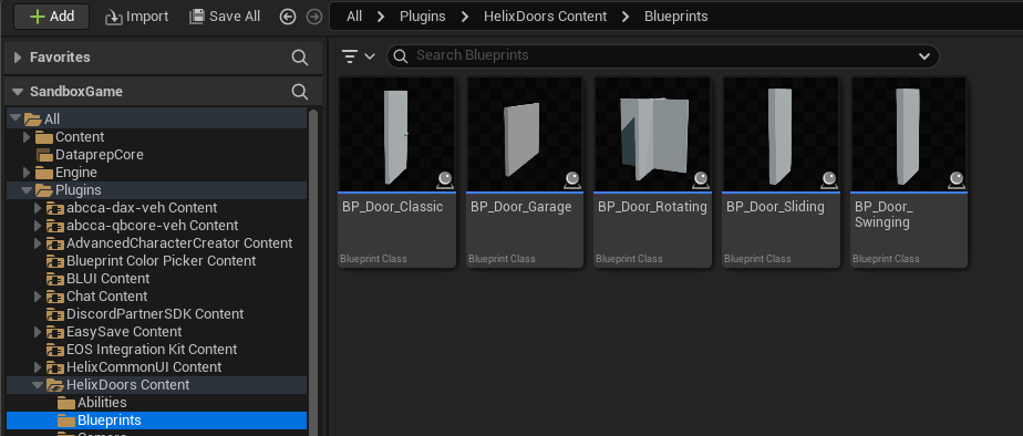 HelixDoorsplugin, withinPlugins/HelixDoors/Blueprintsfolder in content browser. -