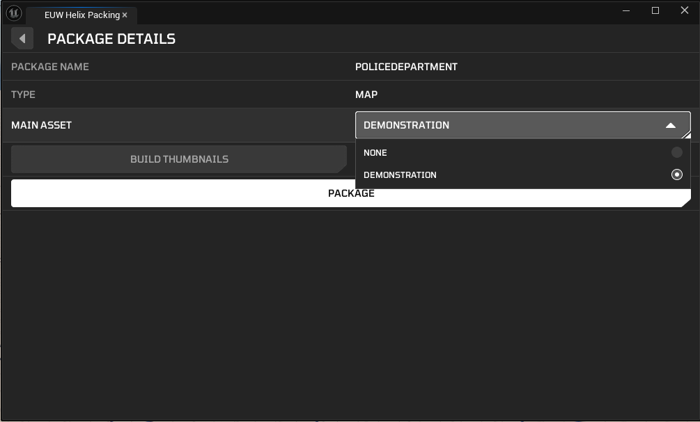 Go into your package and choose Main Asset to the level asset you would like to use for your package. This is should be the persistent level you used for your map.