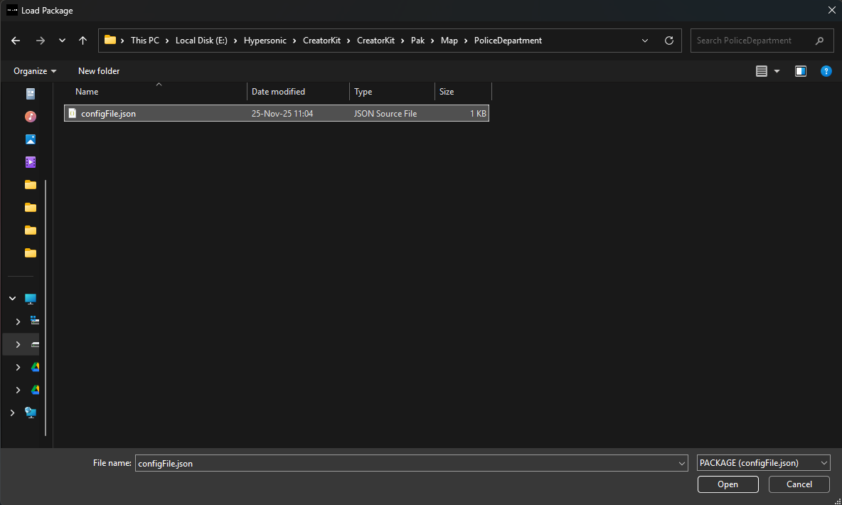 On the next window, find your Creator Kit installation's, go into plugins and find the package you just created. In this case we are going to import it into Map_MyNewMap. Then open the