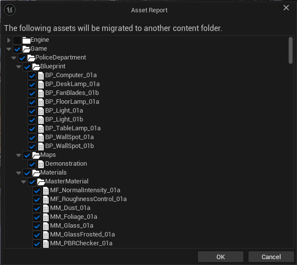Right click to root folder containing all assets in content browser and click Migrate, it is also ok to migrate the entire content folder, since the plugin workflow will take care of placing everything into your plugin content folder. Alternative, you can find the specific Level you want to migrate, right click the level and click migrate. Unreal will handle the dependencies.